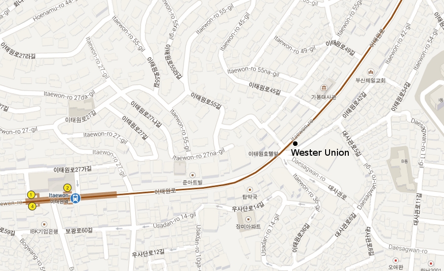 - Noksapyeong-daero (Straßennamen) - bis zum Hotel CAPITAL
